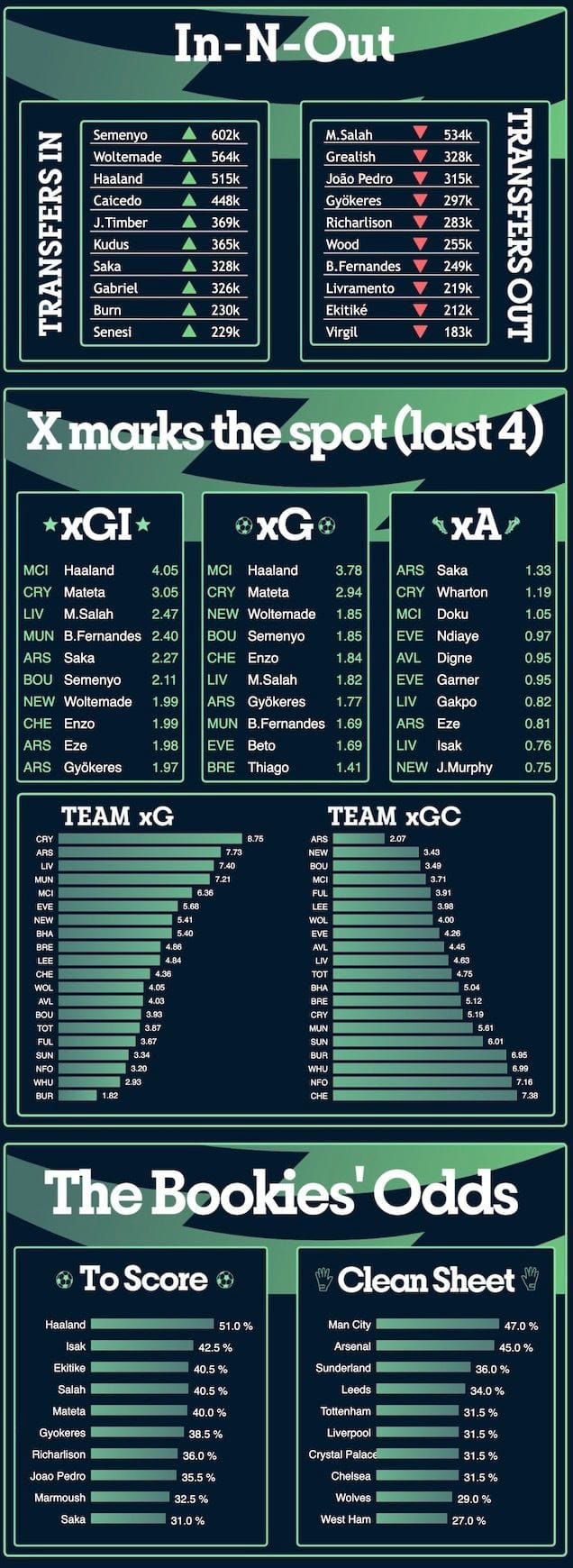 ⚡ Woltemade 11.4% * Good Fixtures ahead; Only fit Newcastle striker.
