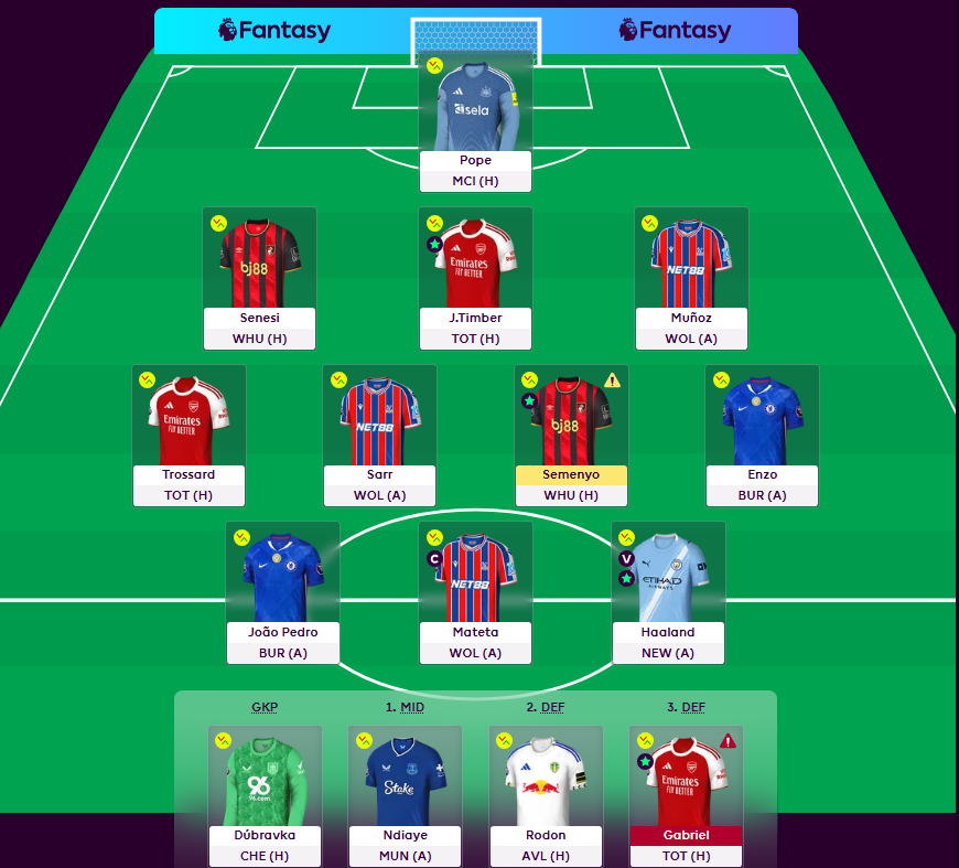 - Ndiaye (Β£6.6m) β Tough fixtures ahead, starting with away at United. The options around Β£6.5m and Β£7.5m all have great fixtures e.g. Sarr/Enzo etc.