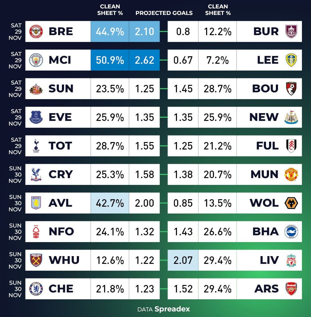 Haaland at home to Leeds in GW13 is a very tempting one. Leeds have conceded 20 goals this season, with an xGA of 14.6, 44 shots on target conceded, and a very poor save percentage of 59.1%.