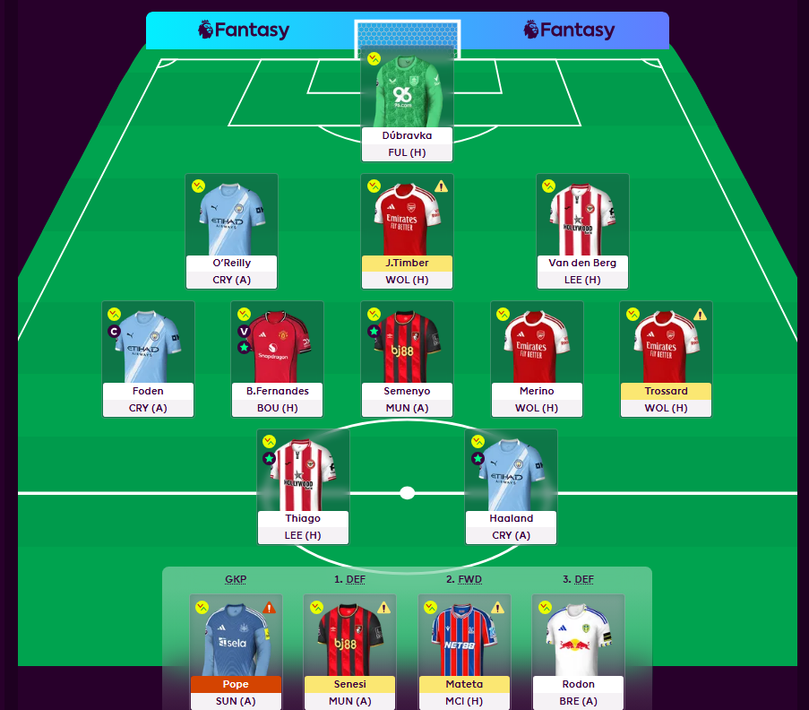 If you don't have Saka, you can put your armband on Haaland(Away at Palace); or Bruno(Home to Bournemouth); or Thiago(Home to Leeds); IN THAT ORDER.