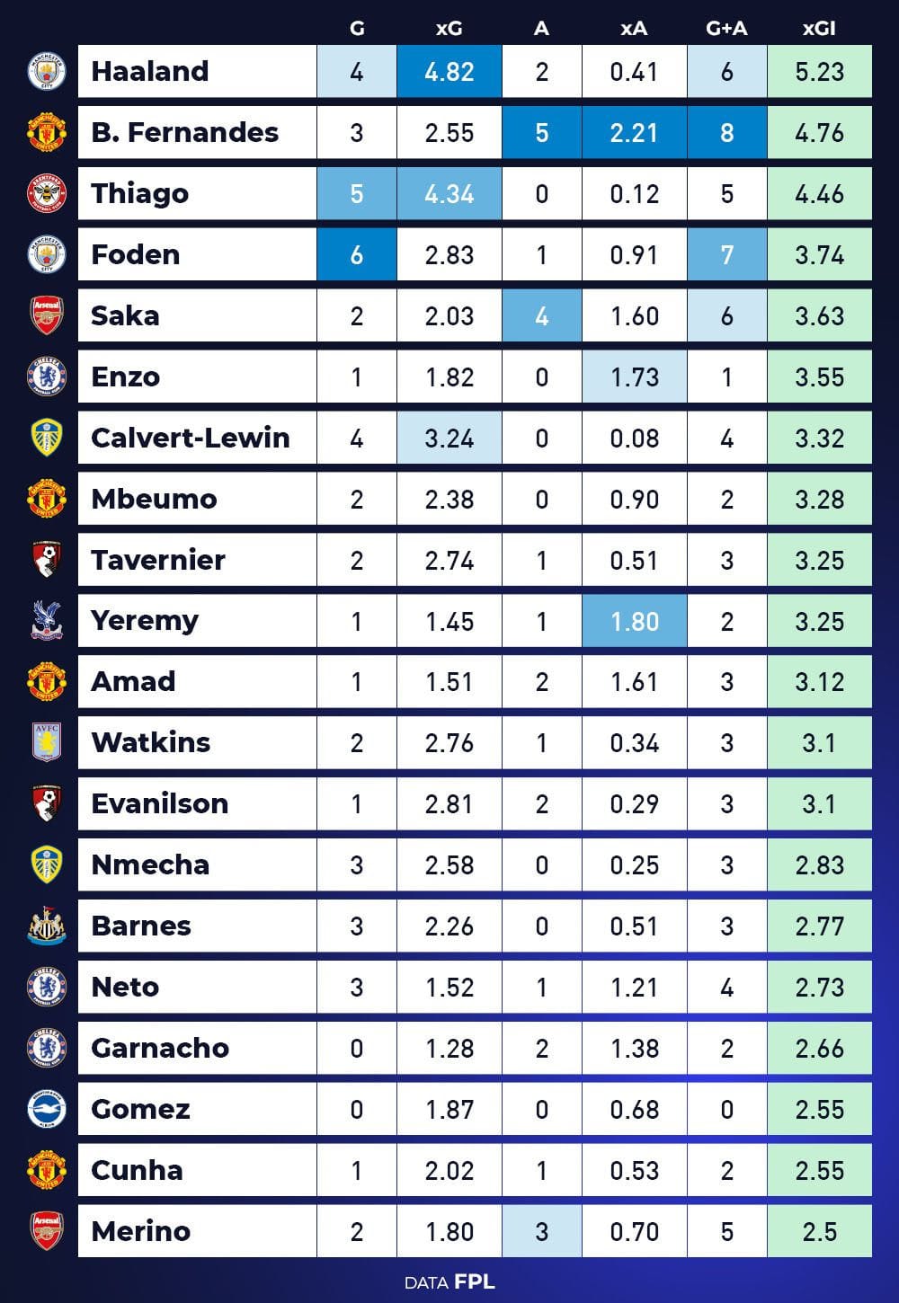 1st for Big Chances, xG, Goals, Goal Involvements, BPS, and FPL Points