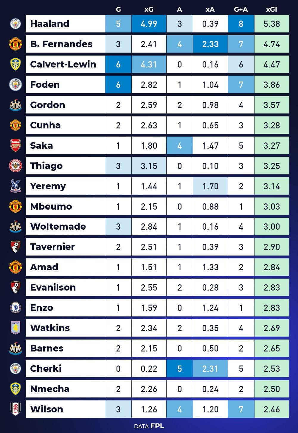 - 2nd for xA, 3rd for Big Chances