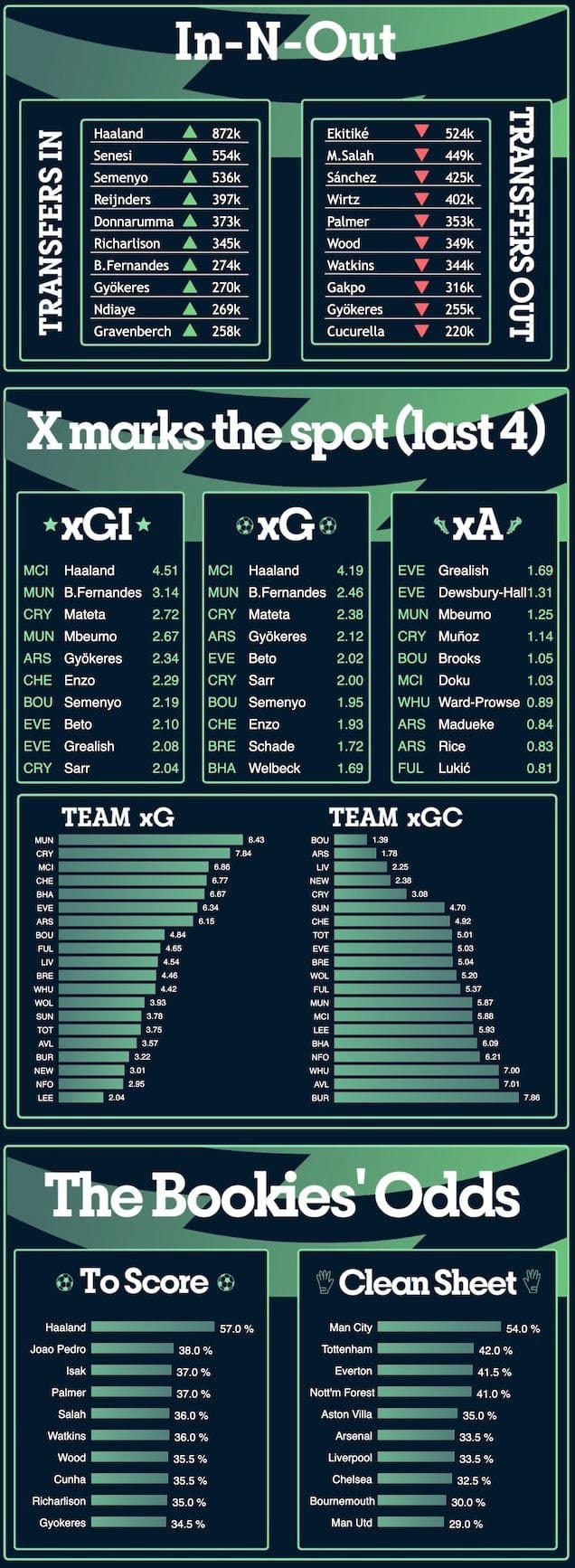 ⚽ Mbeumo (£8.1m) — 15.3% * Has great attacking data; Plays a leaky Brentford.